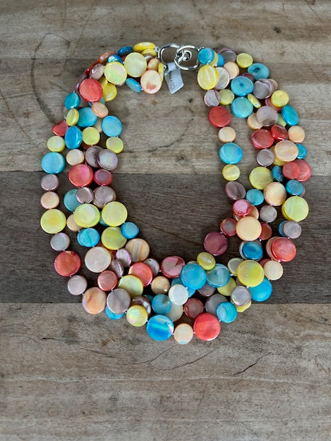 5-Strand Mother of Pearl Necklace (Navy/Fruit Salad)