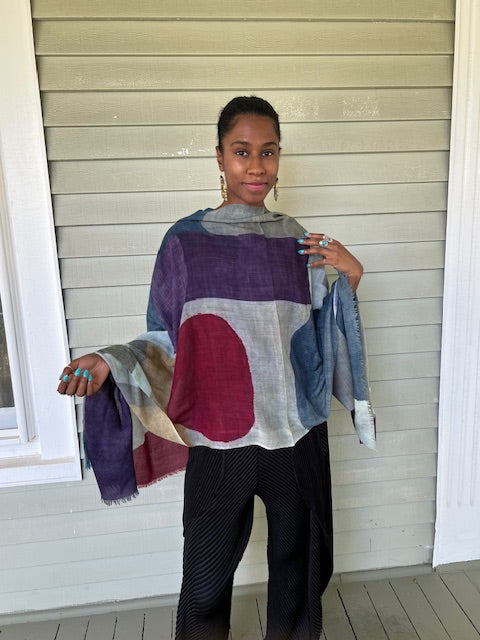 Abstract Brush Stoke Scarf (Green or Wine)100% silk
