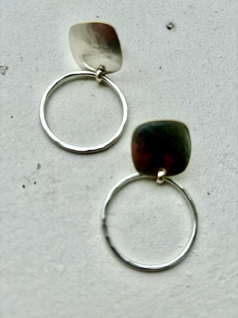 Square with Hammered Ring - Clip On (Silver)