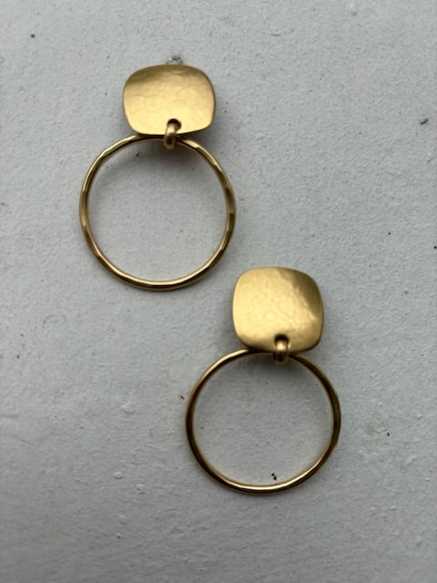 Square with Hammered Ring - Clip On (Brass)