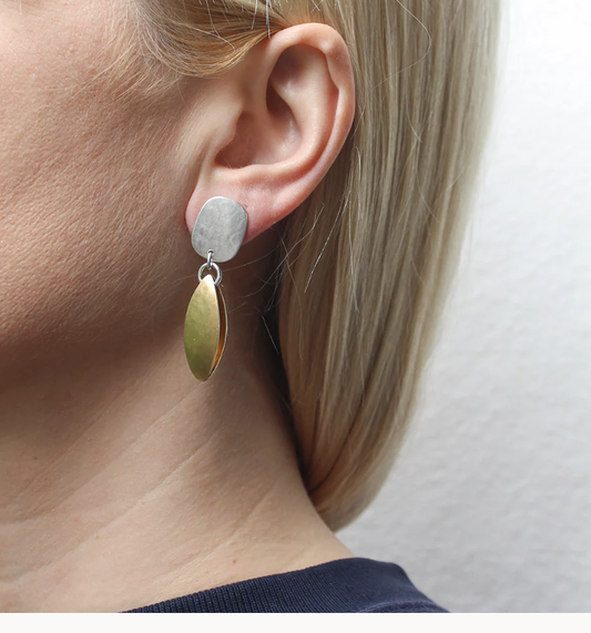 Mixed Metals Diamond Shape Drop Earrings (Clips)