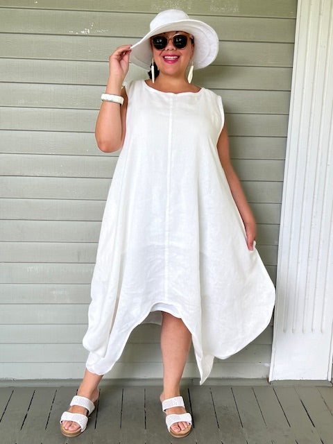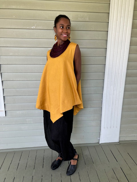 DTH 100% Japanese Linen Hi Lo Short Sleeve Top