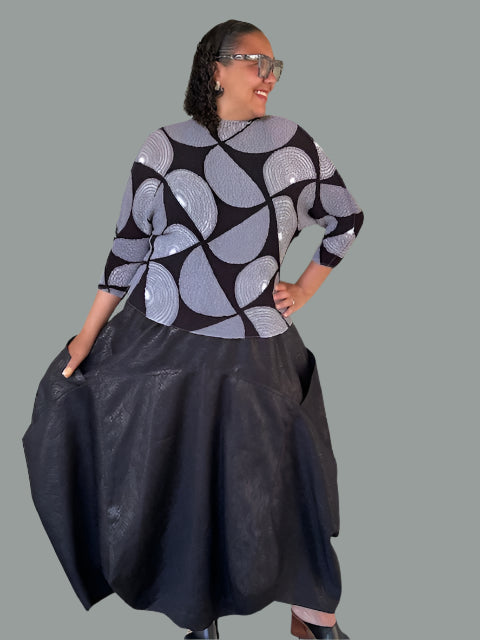 DTH Dots & Stripes Sleeveless Waterfall Top (Black and White)