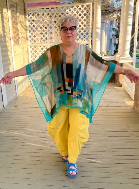 Vanite Couture Pleated Poncho (Coral/Red, Teal/Navy, or Mocha/Lime)