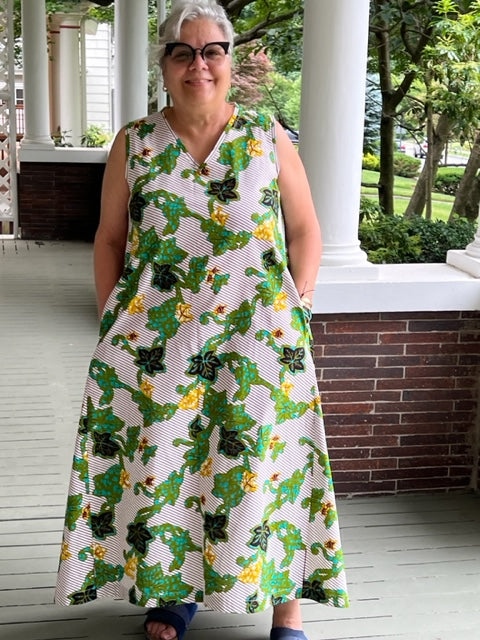 DTH 100% Cotton /Ankara Leaf Print Side Panel Dress