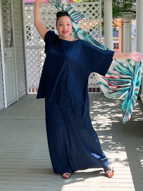 DTH Navy Silk Stretch Charmeuse Pants and Top (Sold Separately)