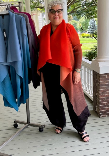 Vanite Couture Long Pleated Ombré Jacket (Orange, Blue, Gray, Fuchsia)