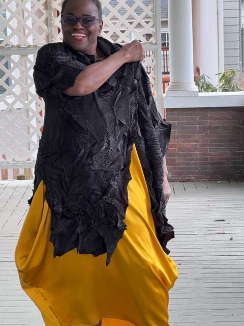 Vanite Couture Black Pleated Duster with Button Closure
