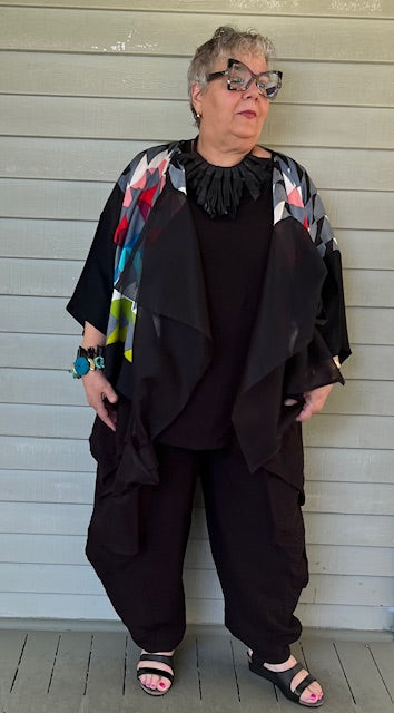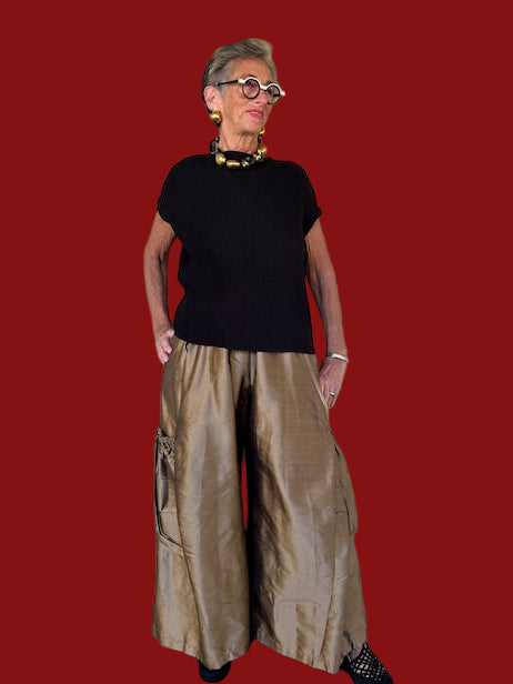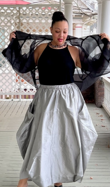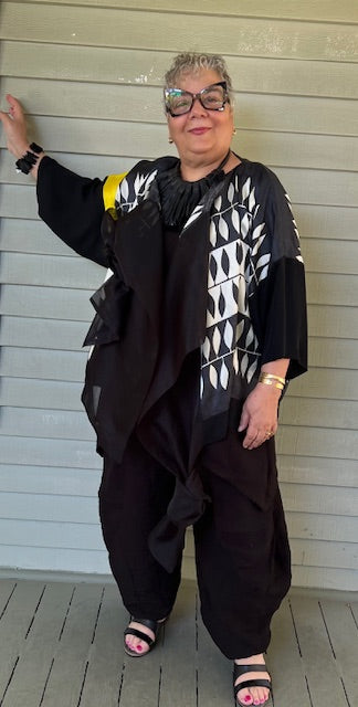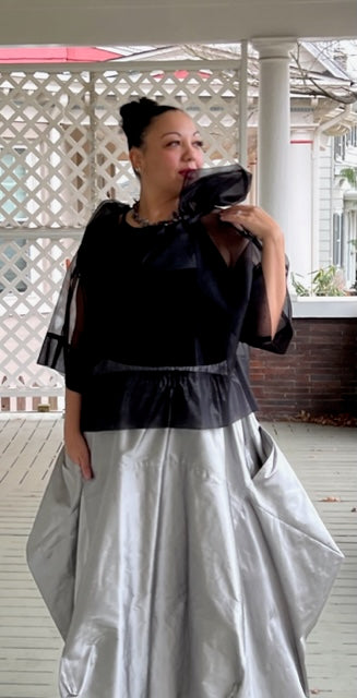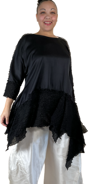 DTH 100% Silk Dramatic Cowl Boxy Top (Black)