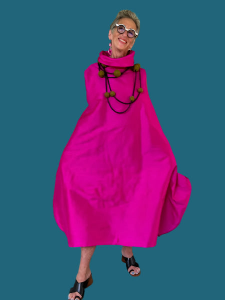 DTH Hot Pink Cowl Neck Dress in Silk Dupioni
