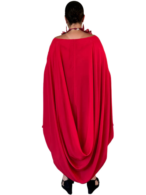 V-Neck Silk Charmeuse Bias Cut Dress (Red)