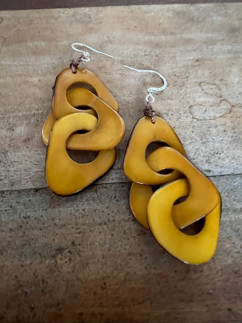 Tagua Bali Earrings (Bone, Salmon, Mustard)
