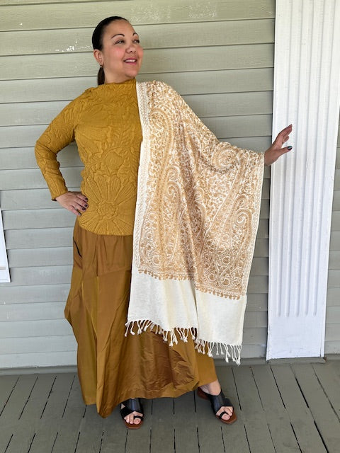 Tanaya Embroidered Gold Ivory Shawl