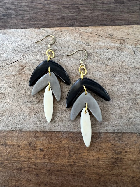Tagua Margarita Earrings (Bone, Tan/Gray/Black, or Bone/Tan/Salmon)
