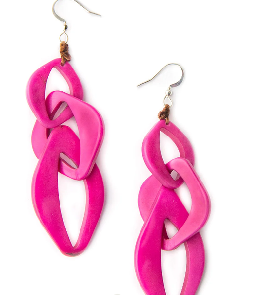 Tagua Pame Earrings (Orange/Green, Magenta, Black)