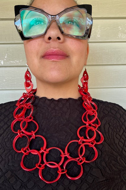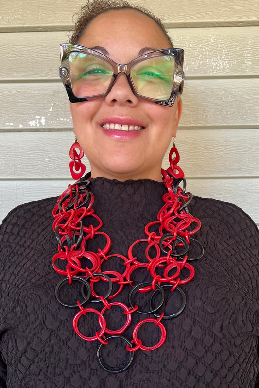 Black and Red Tagua Link Necklace