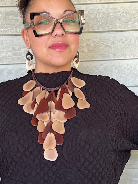 Geometric Brown and Tan Tagua Necklace