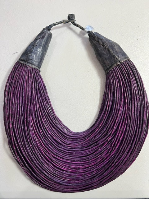 Brightly Colored Multistrand Leather Necklace (Mustard, Purple, or Maroon/Black)
