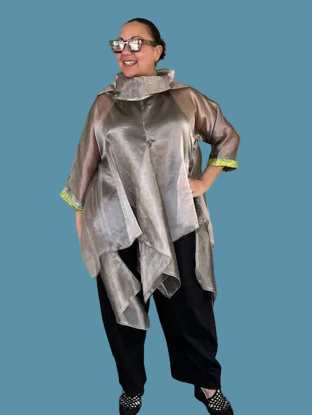 DTH 100% Silk Metallic Waterfall Top