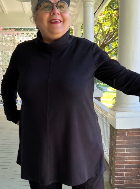 Eleven Stitch Cotton Foldover Turtleneck swing Top (Black)