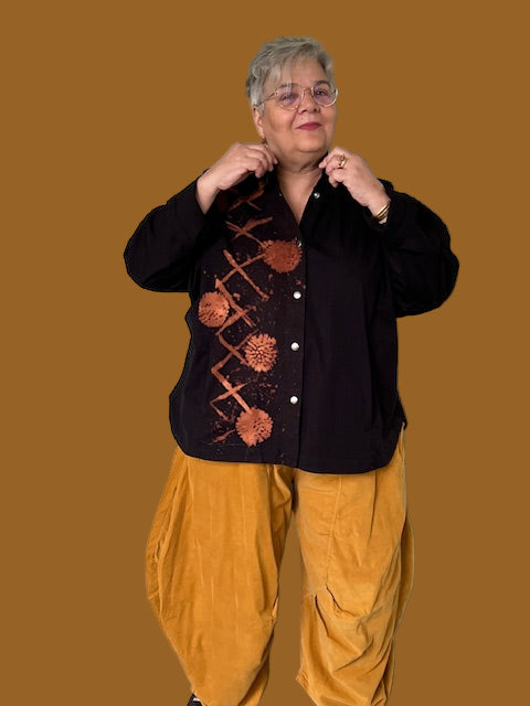 Hand Dyed Gerties Eleven Stitch Stand Up Collar Top (Black)
