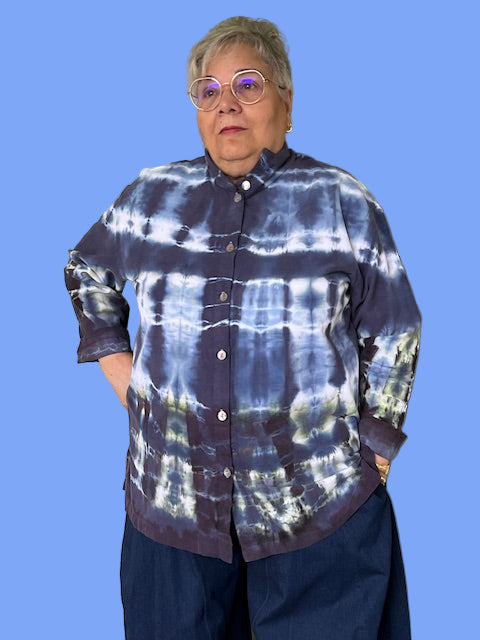 Gerties Eleven Stitch Tie Dyed Criss Cross Yoke Shirt