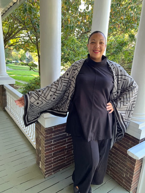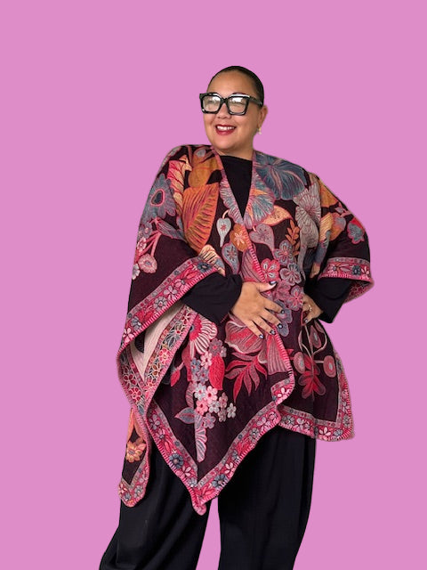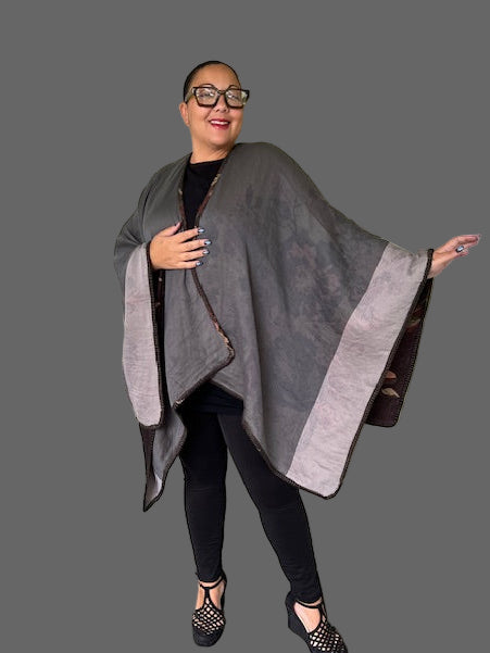 Lacy Reversible Ruana Wrap (Black/Multi)
