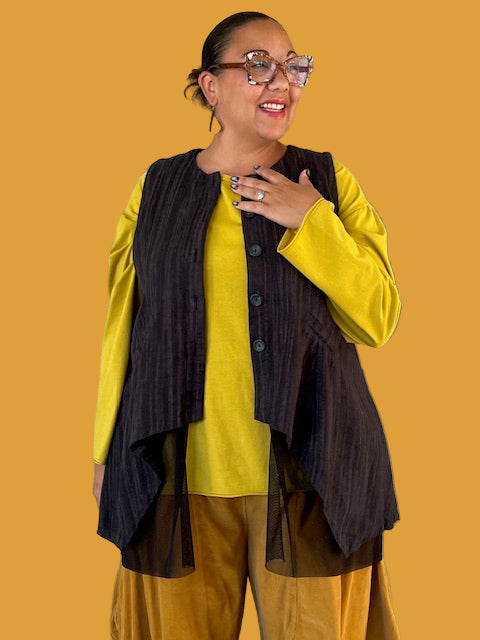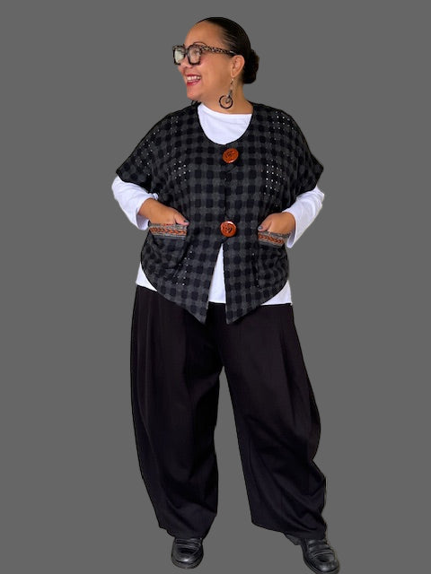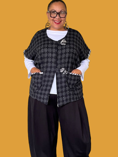 DTH 100% Wool Boxy Vest with Black/White Trim
