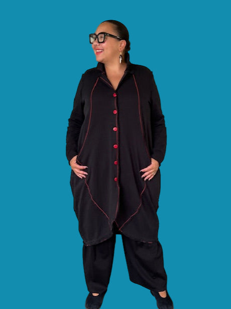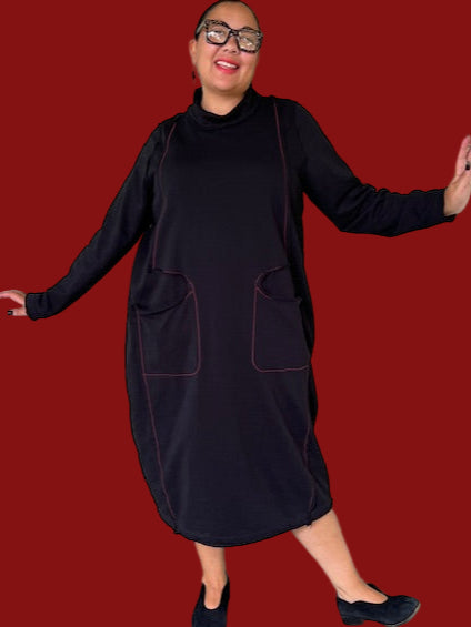 Hand Dyed Gerties Eleven Stitch Stand Up Collar Top (Black)