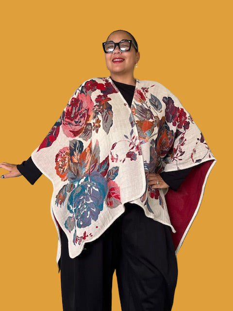 Lacy Reversible Ruana Wrap (Red/Cream)