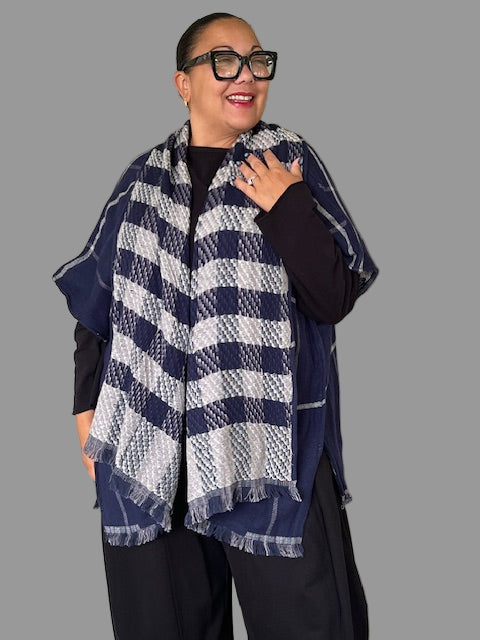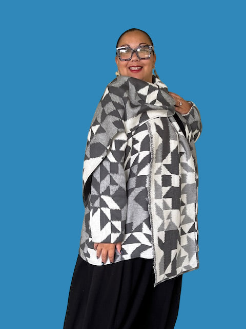 Herring Bone Sweater Jacket Wrap Coat with Scarf