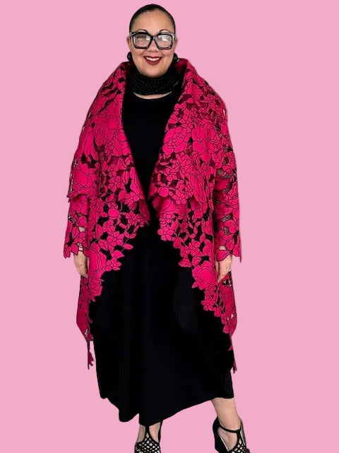DTH 100% Silk Pink Floral Embroidered Cut-Out Jacket