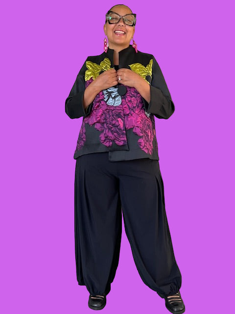 Transparente Asymmetrical Crop Jacket (Teal Floral or Olive Floral)