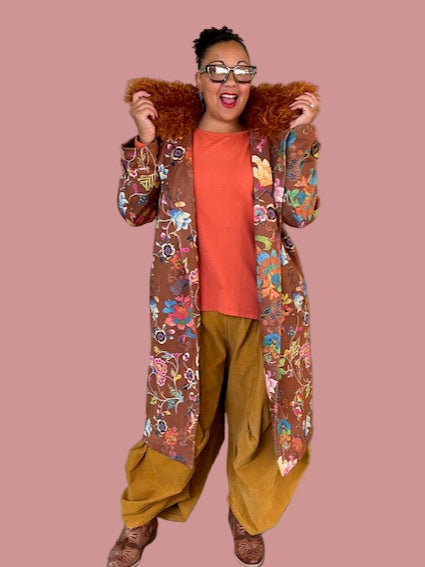Jayley Faux Suede Embroidery Effect Trench Coat