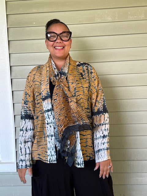 Shibori Hand Dyed Jacket (Gold)100% Tissue Silk