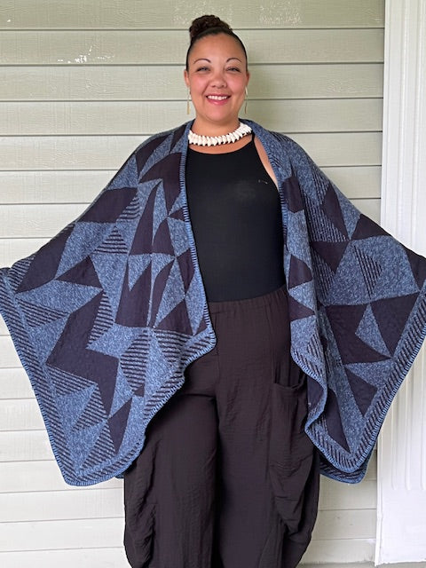 Reversible Triangles Ruana Wrap (Blue or Beige)