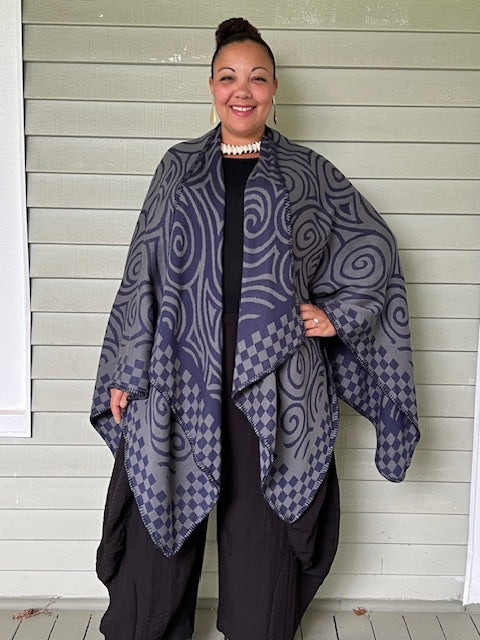 Reversible Swirls Ruana Wrap (Denim Blue)