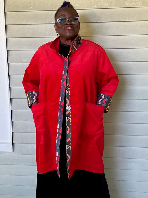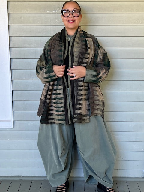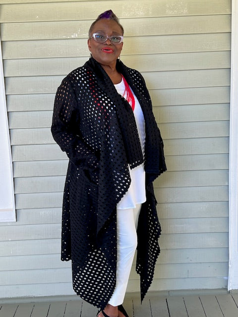 Vanite Couture Shawl Collar Duster -Black/Gray Print