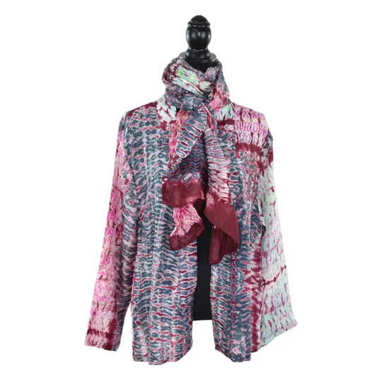 Shibori Hand Dyed Jacket (Wine)100% tissue silk with matching scarf