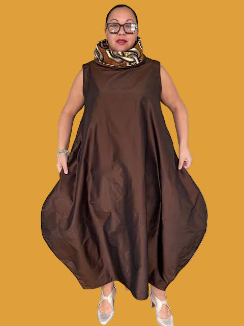 DTH Chocolate Brown Silk Taffeta Chains Bubble Cowl Dress