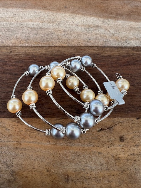 Silver &Champagne Pearl Wrap Bracelet