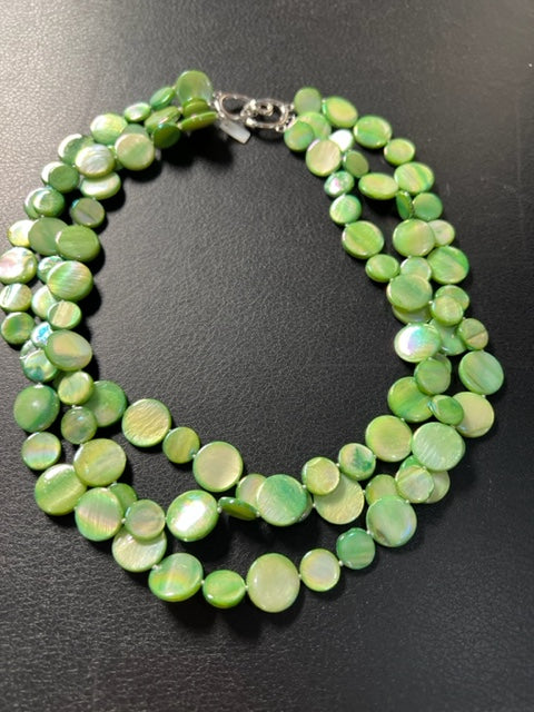 3-Strand Mother of Pearl Necklace (Lime Green)