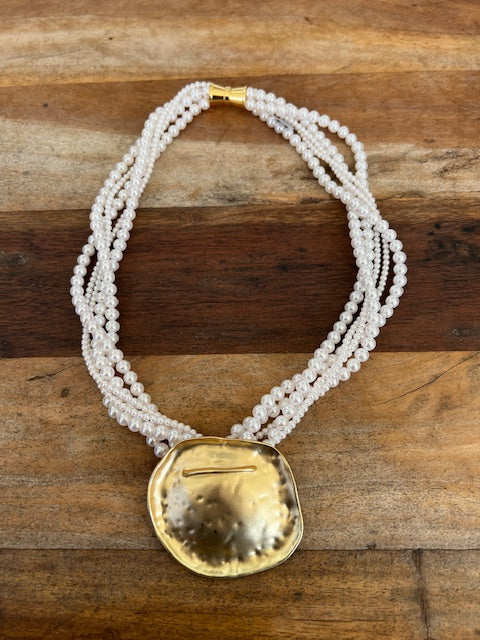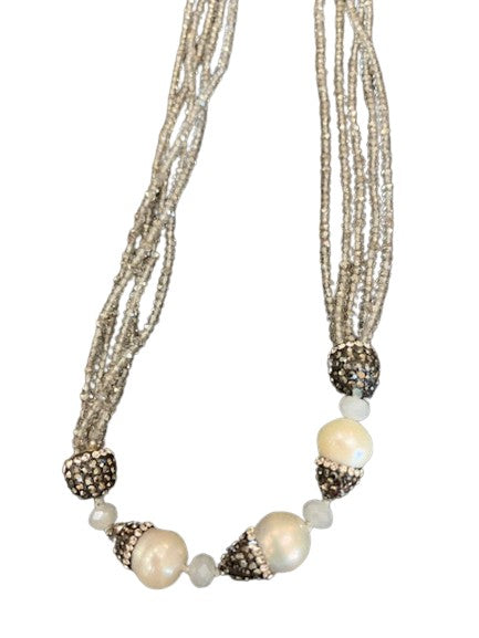 5-Strand Mother of Pearl Necklace (Gray and White)