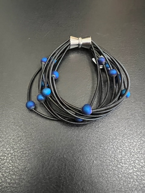 Black 10-Strand Piano Wire Bracelet with Blue Geodes