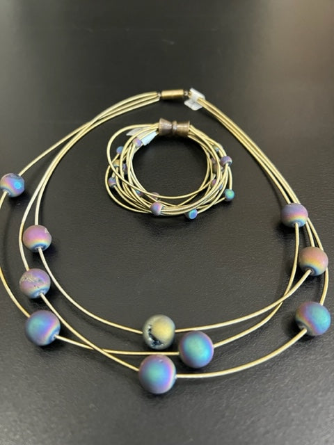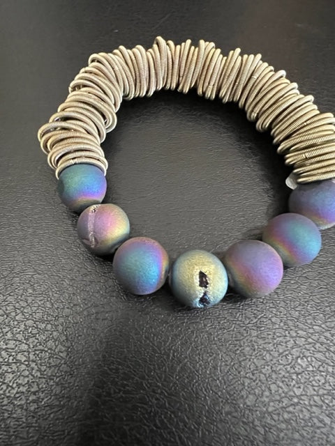 Bronze 10-Strand Piano Wire Bracelet with Iridescent Geodes