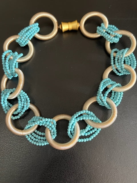 Piano Wire Necklace with Hematite Beads (Gold/Turquoise or Silver/Purple)