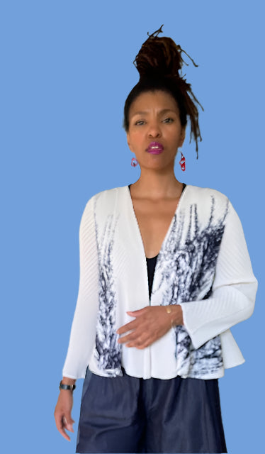 Pleats Cream Jacket With Splash Of Navy