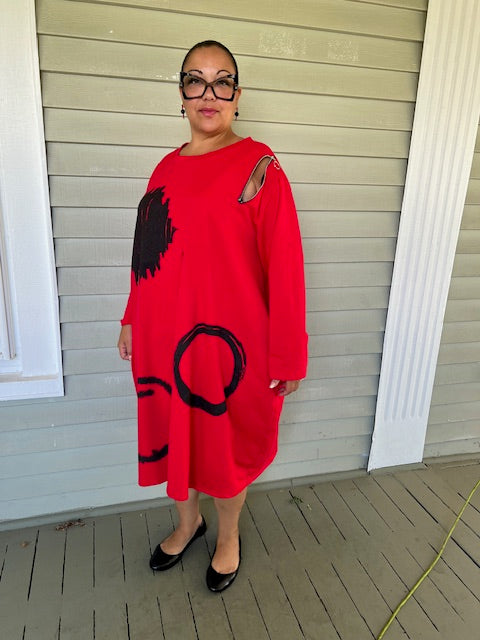 Zipper Shoulder Red Sweatshirt Dress