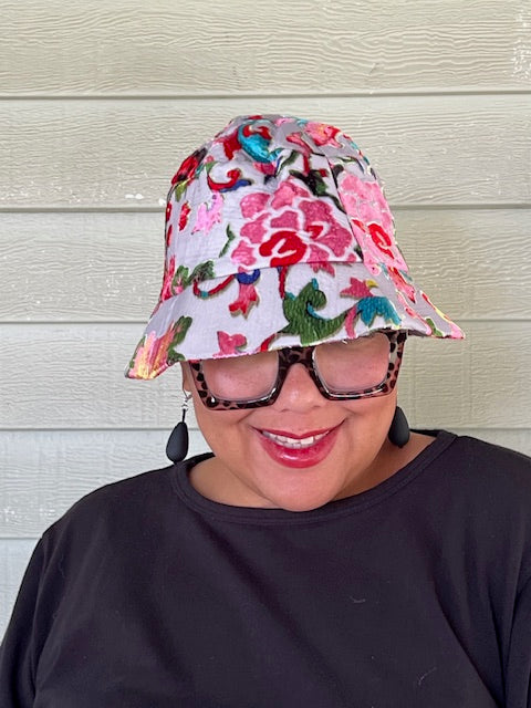 Jayley Hand Painted Silk Devore Hat (Floral)