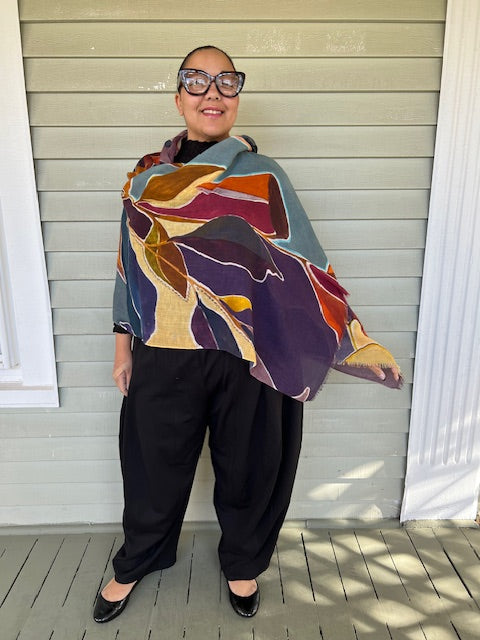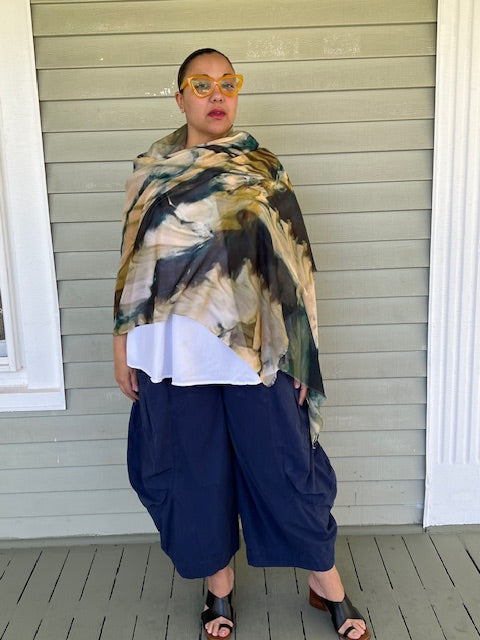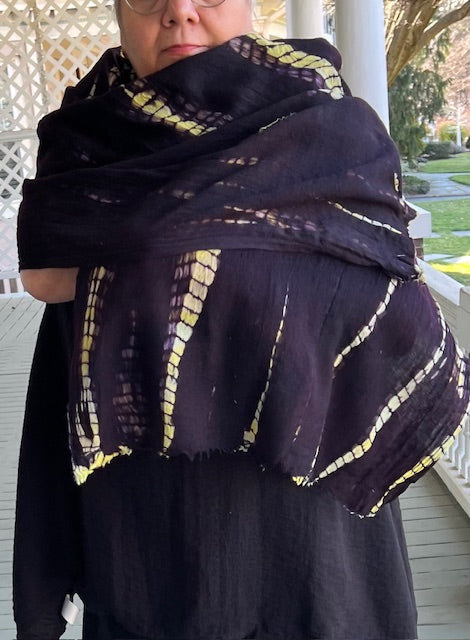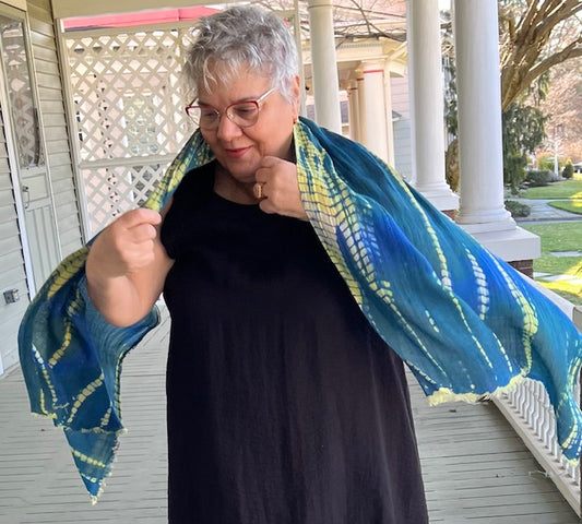 Circles Hand Dyed 100% silk Scarf (Blue or Black)